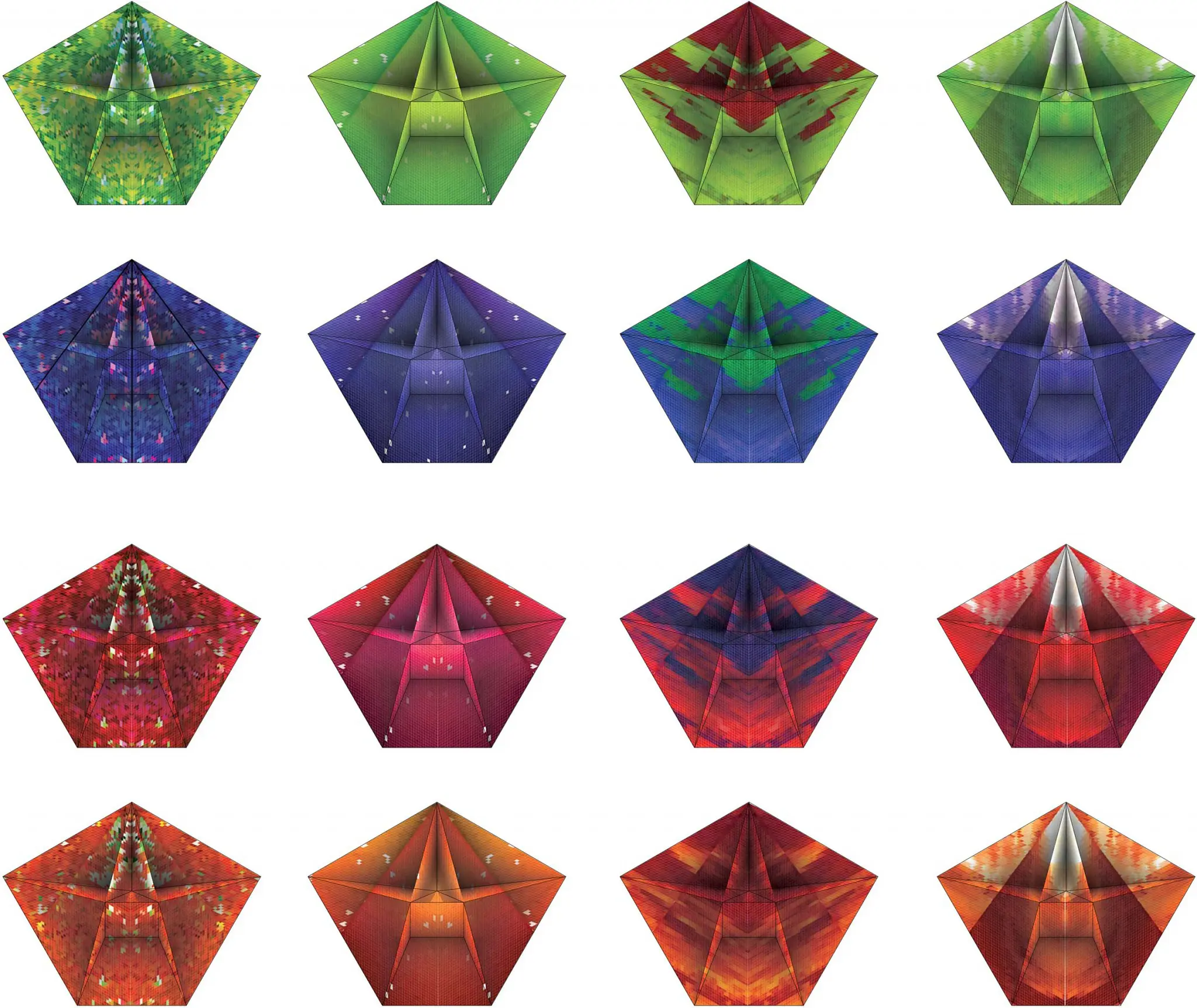 The deep ceilings of our tents for the New Museum shelter an array of urban activities while evoking non-urban ceilings such as forest canopies and night skies. However, rather than unfiltered images of natural landscapes, the overhead graphics sample and cross-reference these diverse environments, creating a novel cosmos that might spark the imagination.